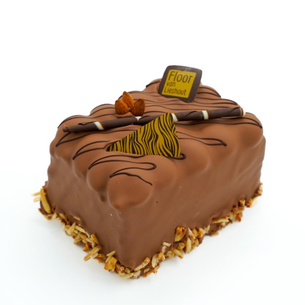 Geniet van een romige roomboter cake, gevuld met luxe Amaretto-crème en overgoten met fluweelzachte melkchocolade. Een onweerstaanbare traktatie voor elke gelegenheid!