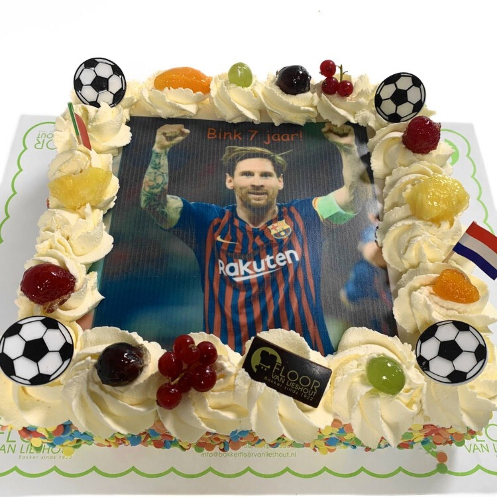 Vier jouw speciale momenten met onze ambachtelijke foto slagroomtaart! Perfect gedecoreerd met seizoensfruit, nougatine nootjes en chocolade. Voeg een persoonlijke foto en tekst toe voor een unieke, feestelijke traktatie.
