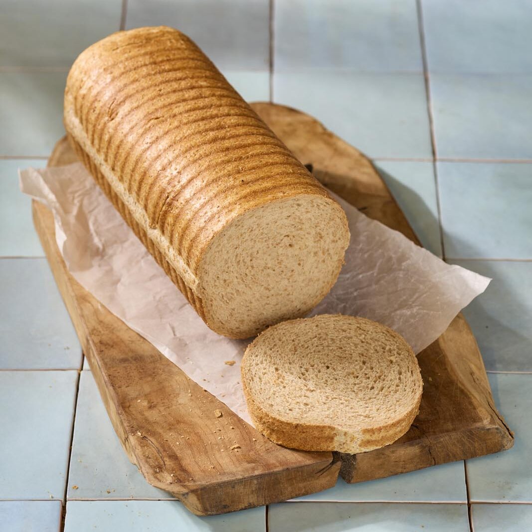 Ons tarwebrood, gebakken in een ronde bakvorm, is perfect voor tosti’s en andere gerechten. Zacht van binnen, met een heerlijke smaak, ideaal voor elke maaltijd!