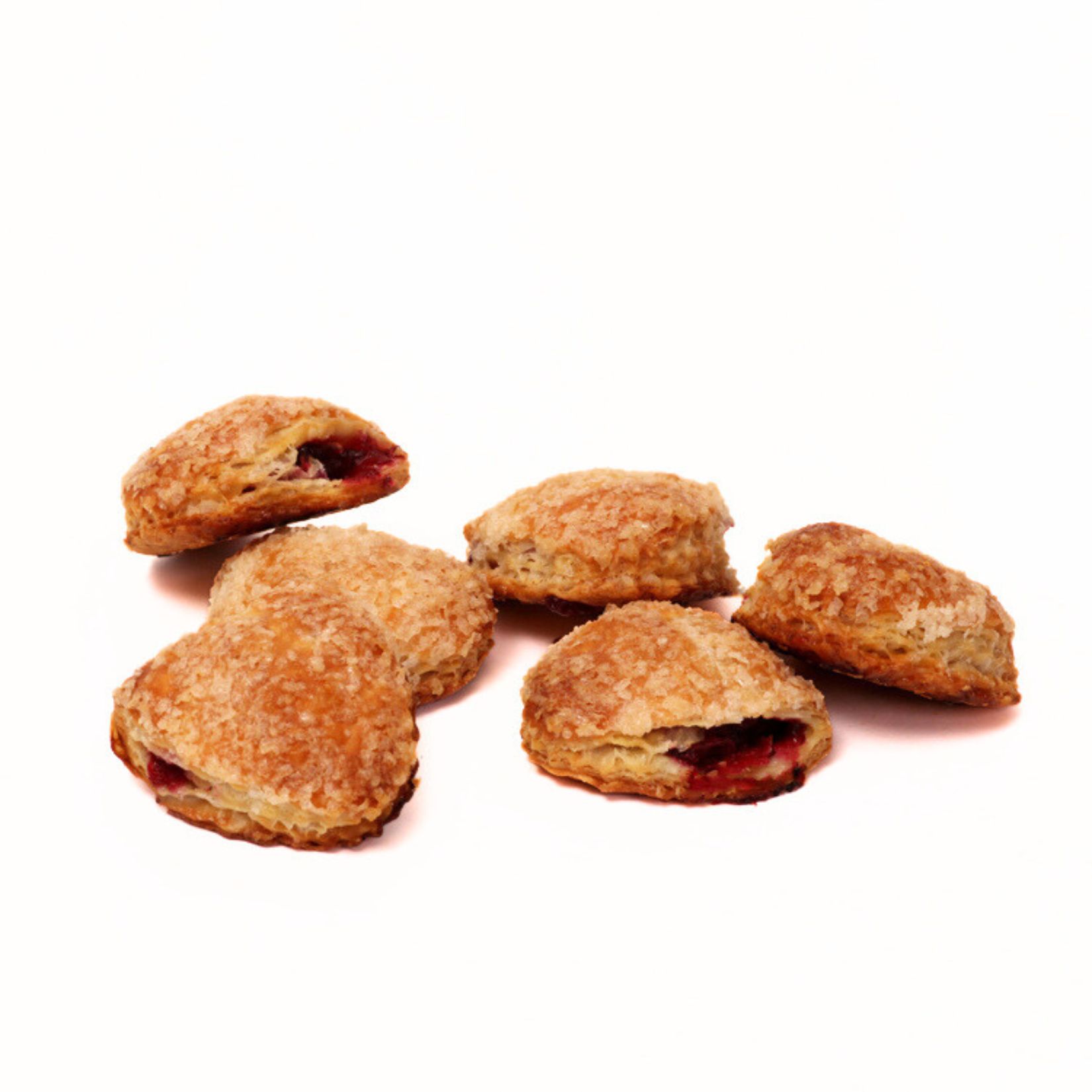 Mini kersenflappen, verpakt per 6. Luchtig en gevuld met sappige kersen, ideaal voor elke zoete snack!