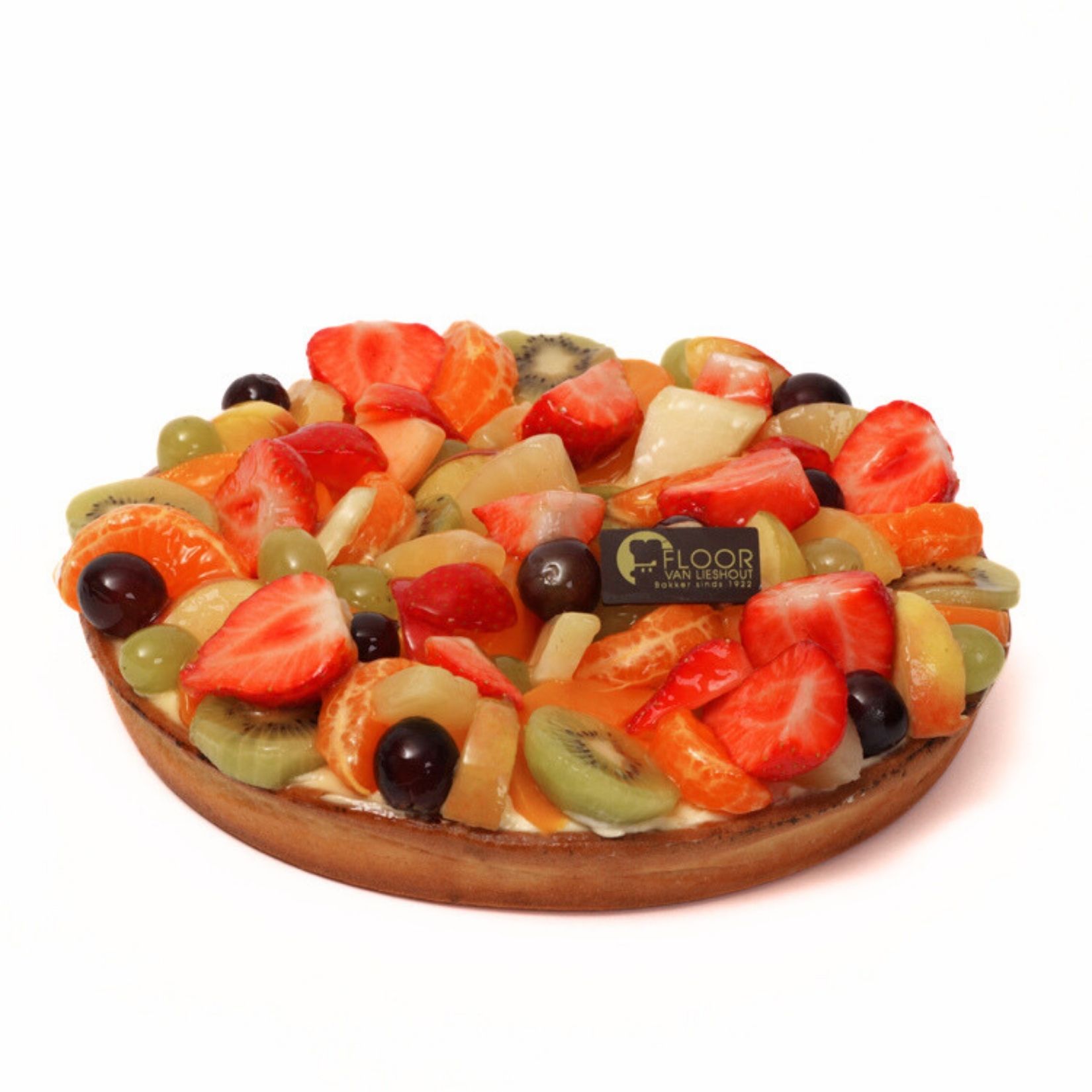 Geniet van een heerlijke vlaai met vers fruit, gevuld met rijke banketbakkersroom. Perfect voor 6 tot 8 personen, een smakelijke en frisse traktatie voor iedere gelegenheid!